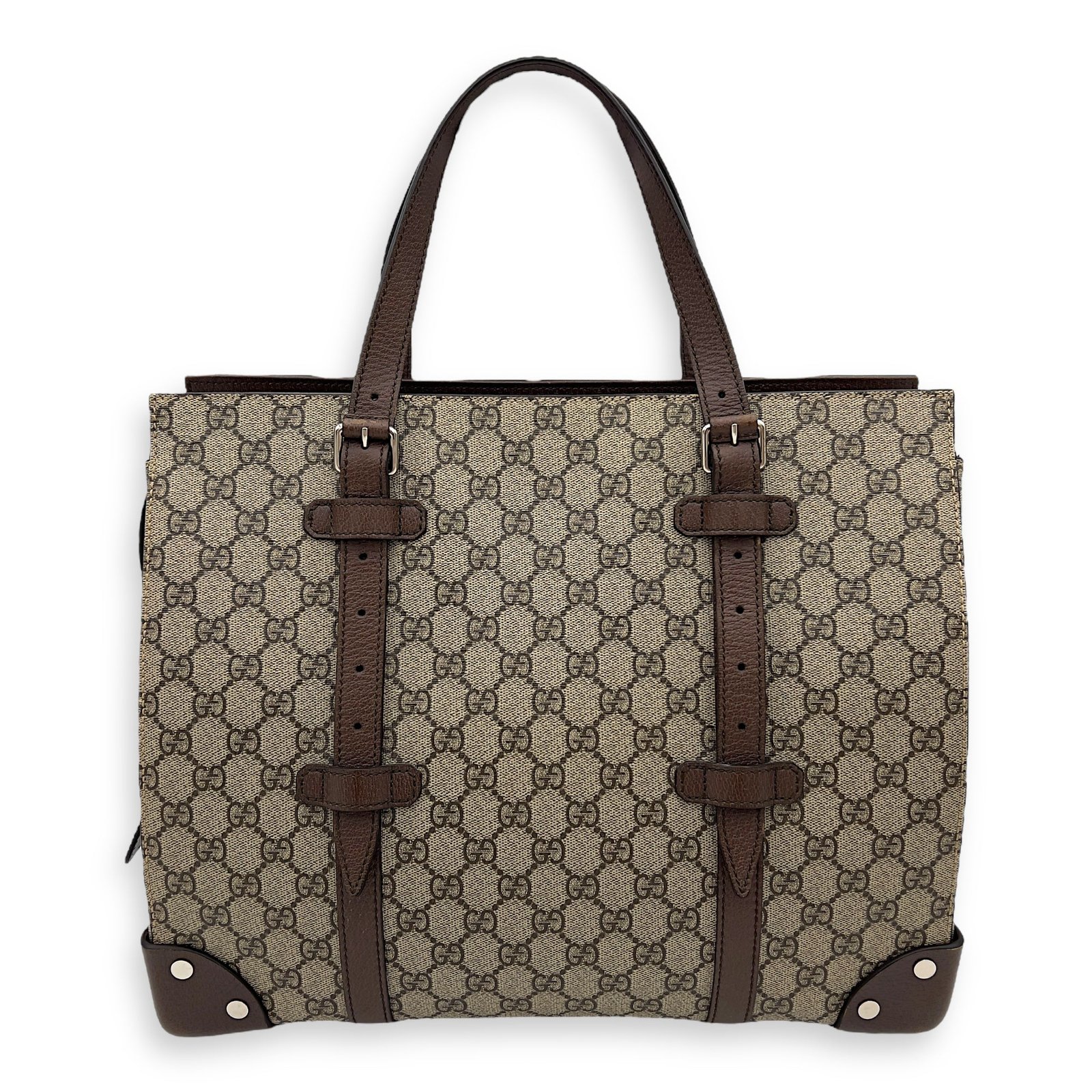 Bags Gucci Guccissima Tote Bag Brown in Coated Canvas, Silver hardware Very Good Condition Brown Tote Bag Men Unisex