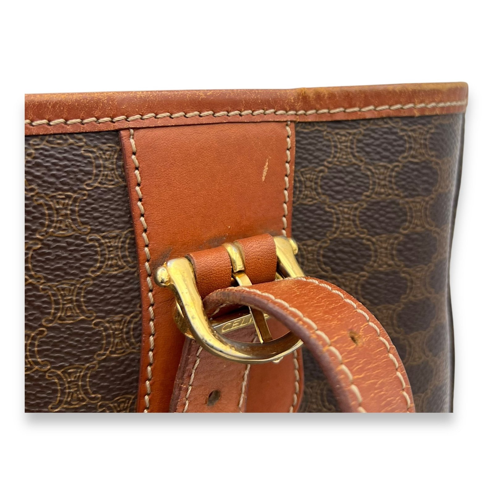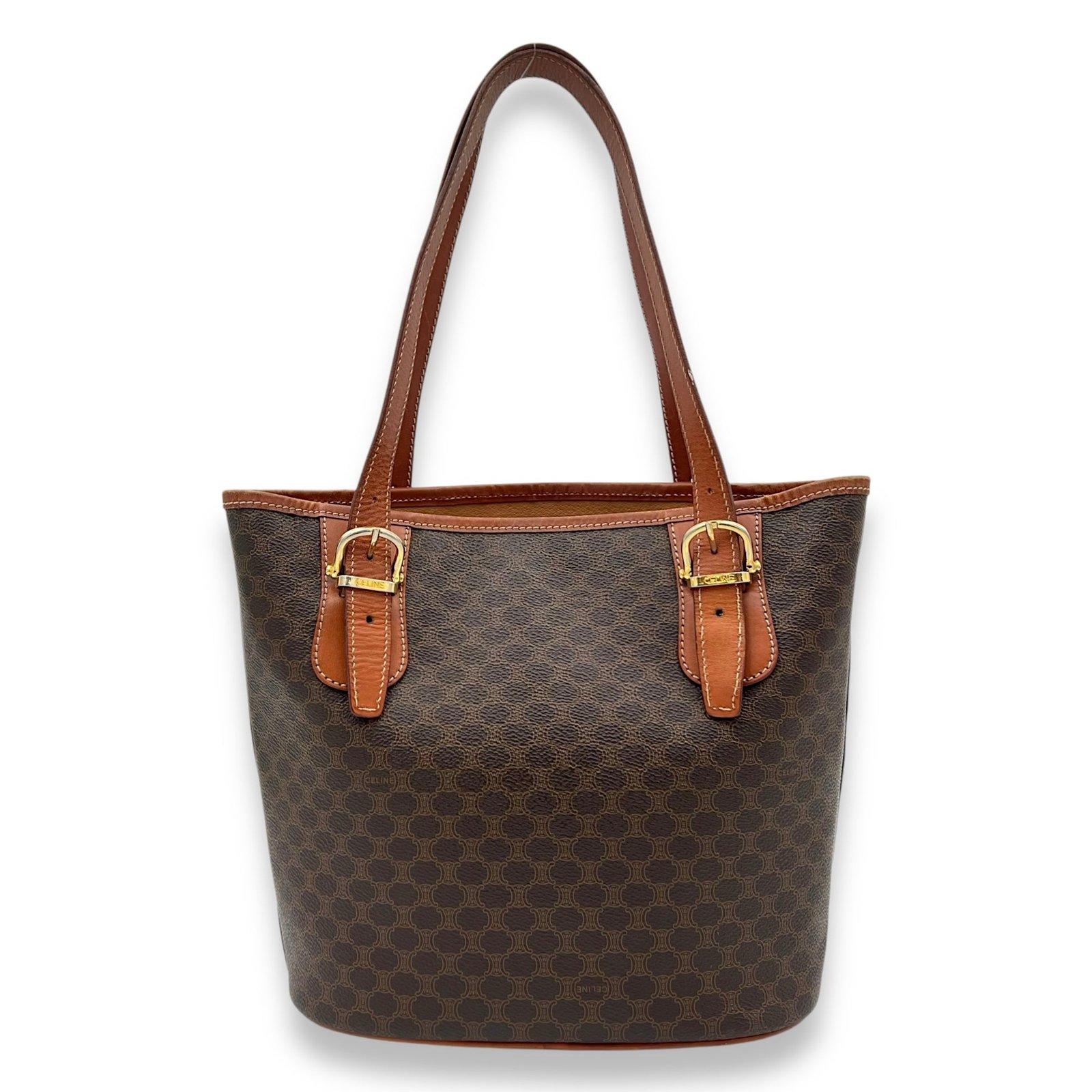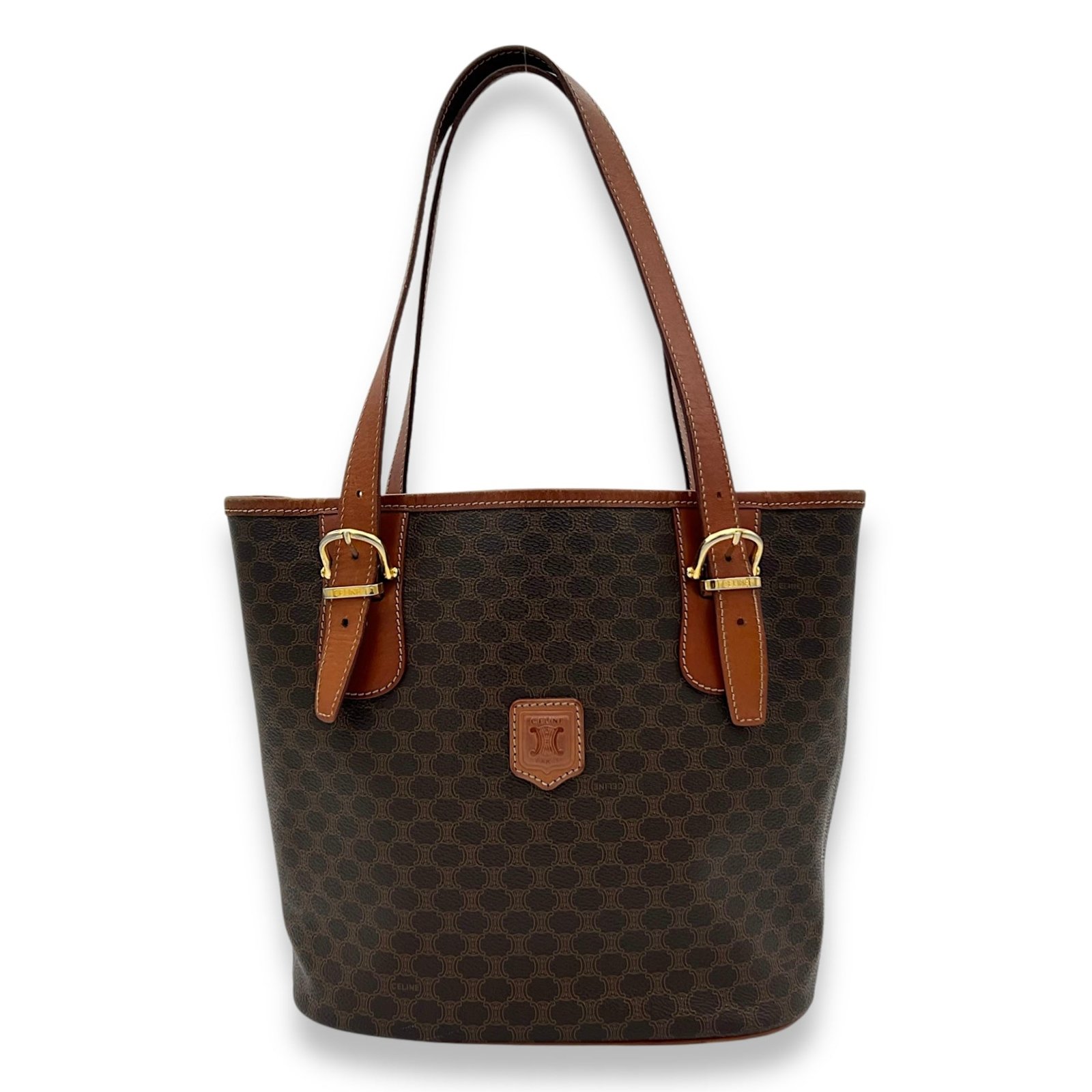 Bags Celine Macadam Tote Bag Brown in Coated Canvas, Gold hardware Good Condition Brown Tote Bag Women Lady Girl